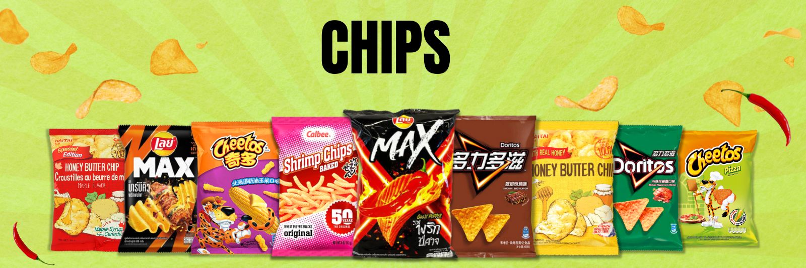 Welcome to our All Chips collection—your snacking heaven! Crunch, munch, and crunch some more on everybody's favorite chips: all imported Lay's the cheese-crunching Cheetos, the boldly flavored Doritos, the unmistakable snackability of Pringles, and the diversity of Haitai chips. Whether you are obsessed with plain-old potato chips or shrimp chips, or you just like to take your palate on a wild trip around the international flavor scene, it is all right here from us so that you never get bored with options.